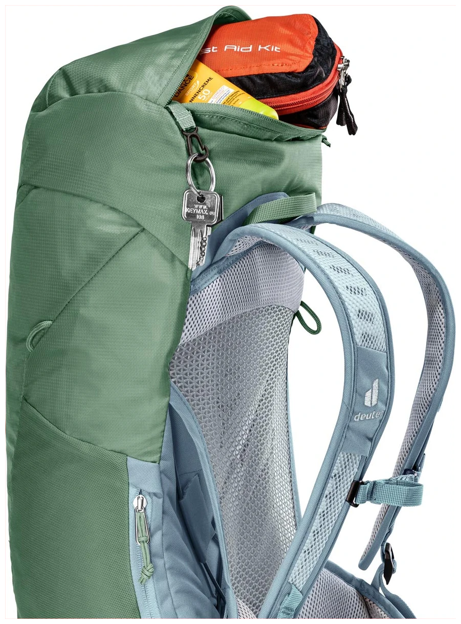 A deuter Aircomfort Flexlite hátrendszerrel hátizsákod és annak tartalma könnyen és légiesen hordozható a pehelykönnyű és maximálisan szellőző hálós hátrendszernek köszönhetően.